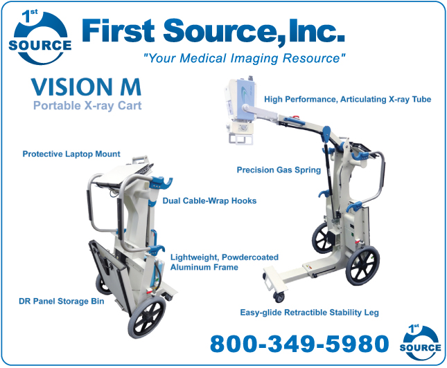 First Source recognizes the importance of digital imaging and advancement in portable radiography with the introduction of the VISION M portable X-ray cart.
